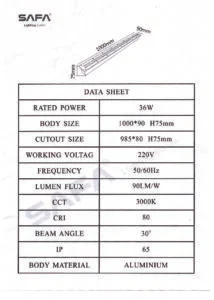 Outer face size: 1000 x 90 mm.