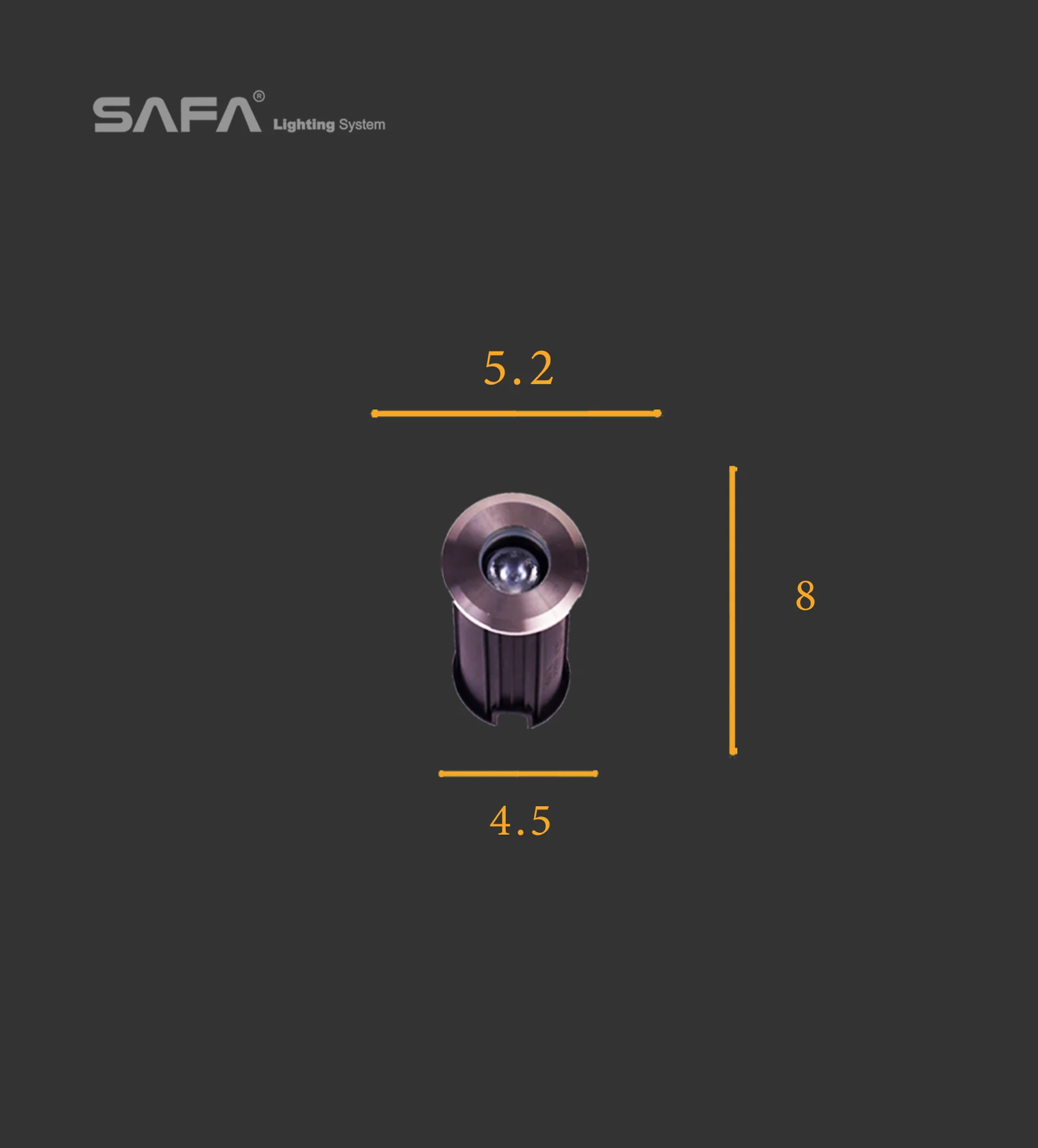 LED Spot Light for garden and walkway lighting Lighting power: 2 watts Lighting color: 3000 K Yellow Hole diameter: 5.2 cm Outer diameter: 4.5 cm Length: 8 cm Life expectancy: 30,000 working hours IP: 65 3-year warranty