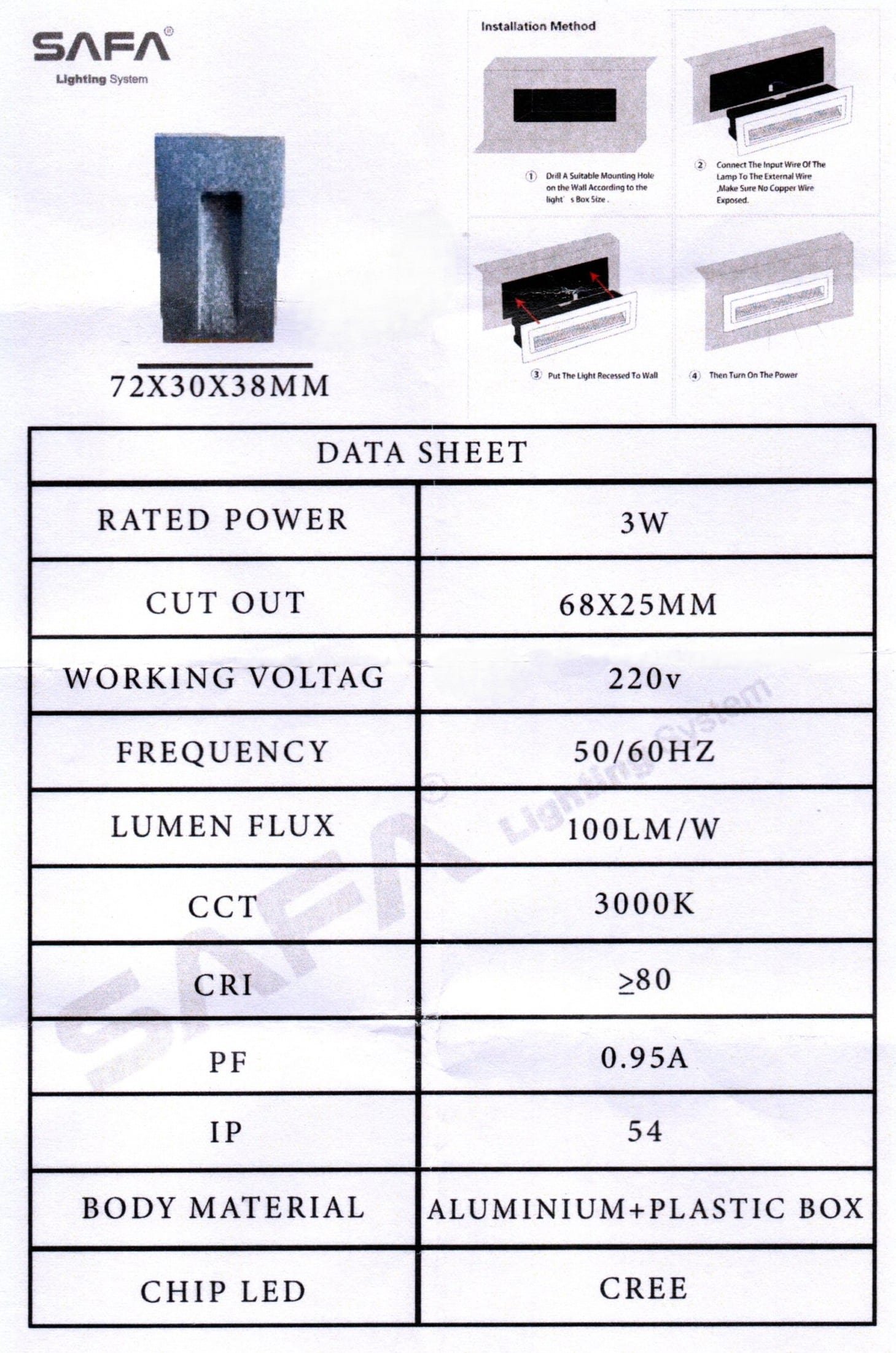 قوة الإضاءة :- 3 وات .
