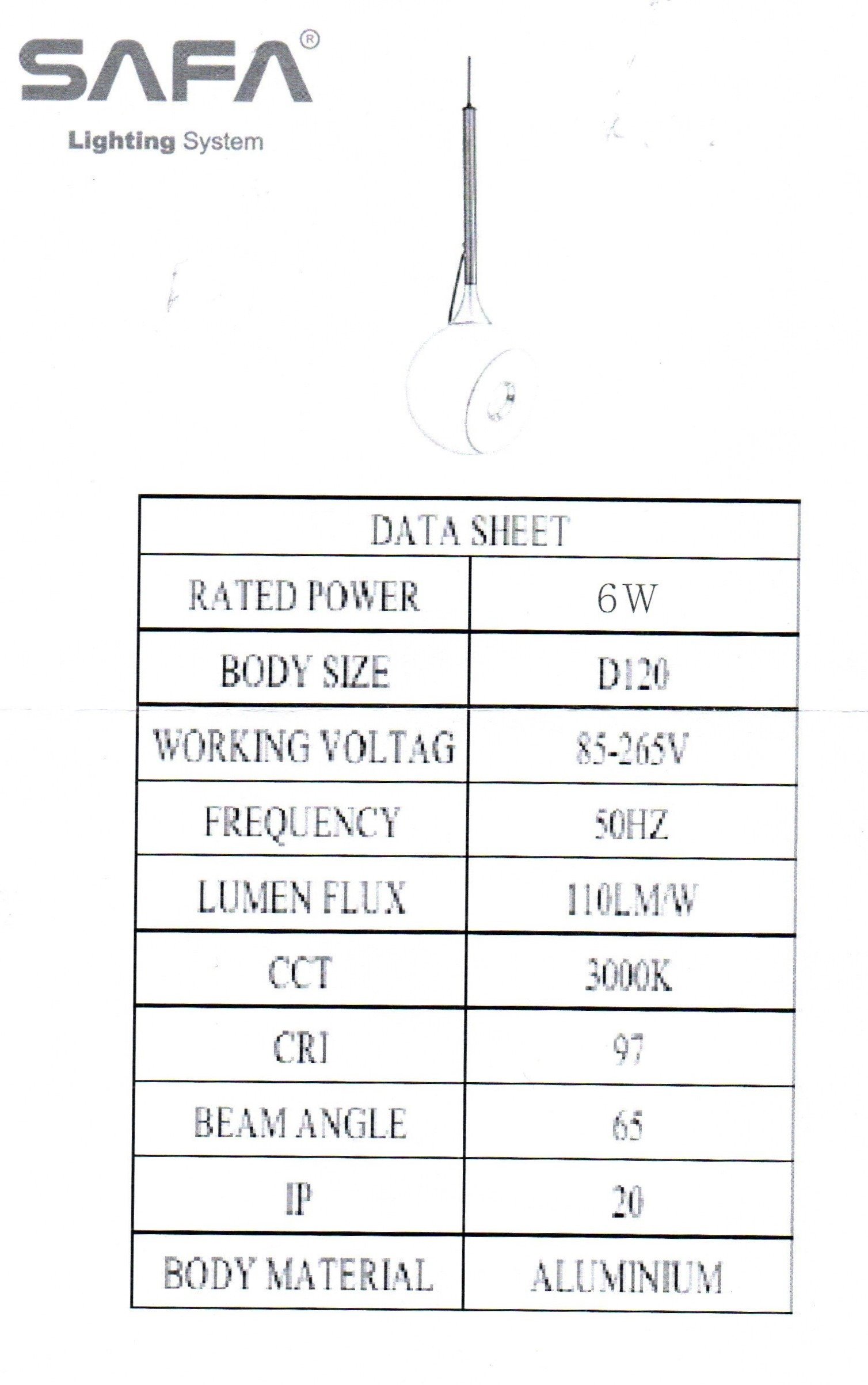 نوع التركيب: مصباح معلق