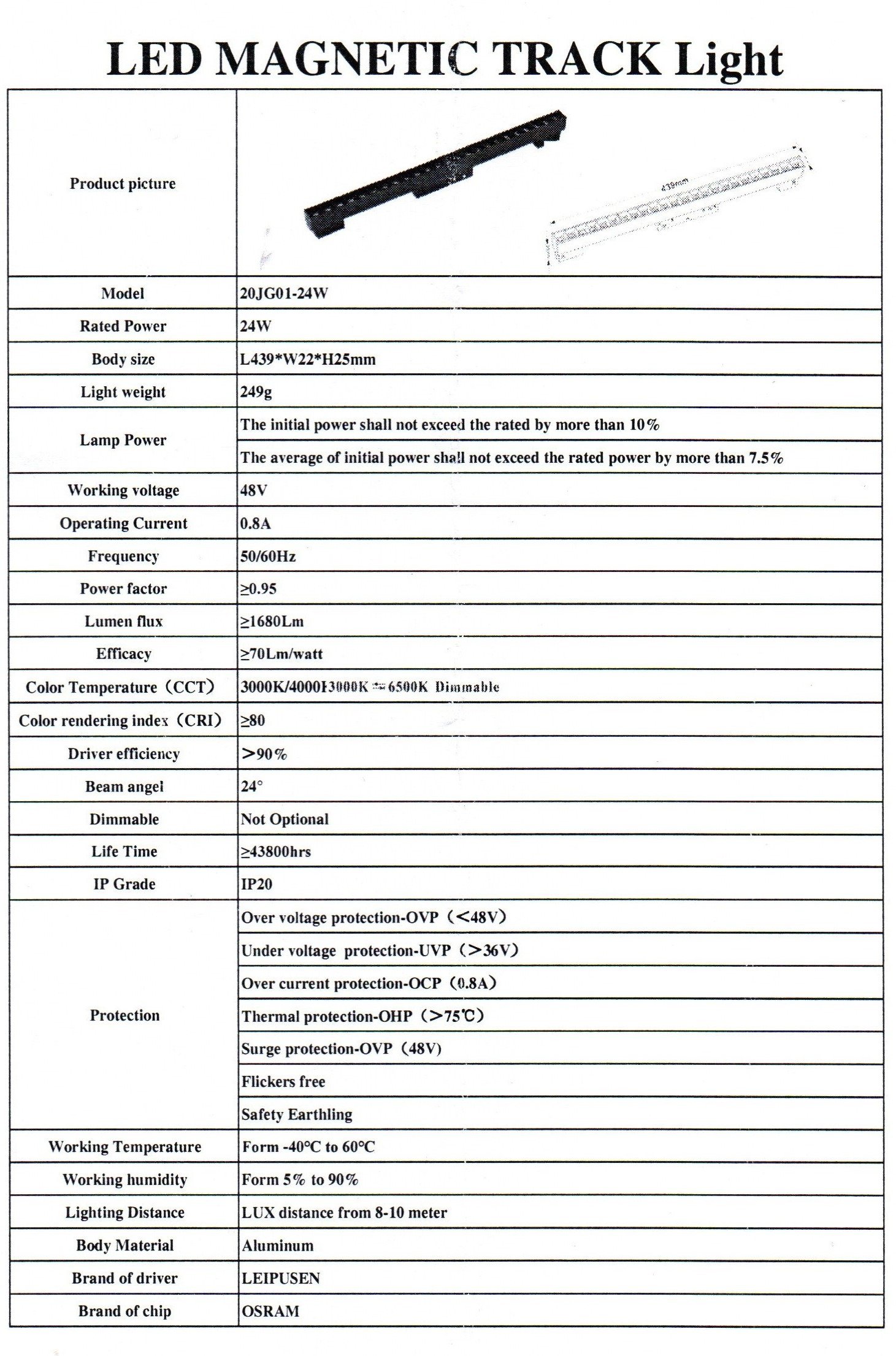 لون الاضاءة : 3000 – k 4000 – 6500
